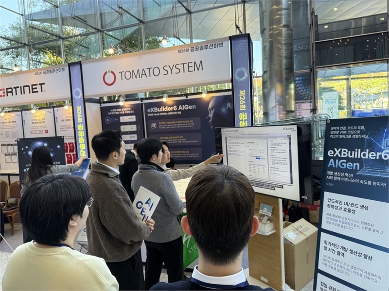 AI 소프트웨어 및 디지털 헬스케어 전문기업 토마토시스템(대표 조길주, 393210)은 지난 14일 서울 코엑스에서 열린 ‘제26회 공공솔루션마켓’에 참가해, 자사의 AI 기반 UI/UX 개발 플랫폼 ‘엑스빌더6 아이젠(eXBuilder6 AIGen)’을 선보였다고 17일 밝혔다.토마토시스템은 공공 분야에서 혁신 솔루션